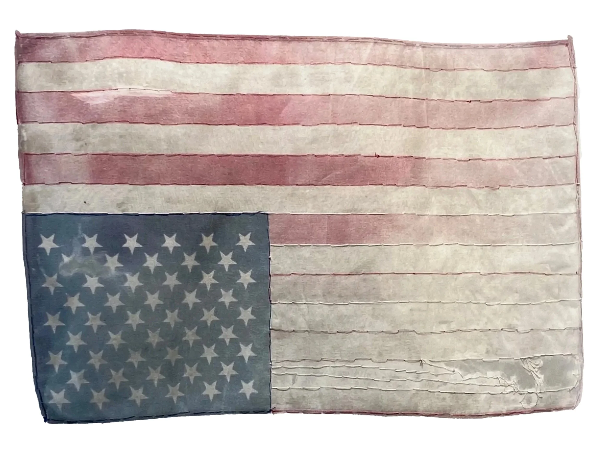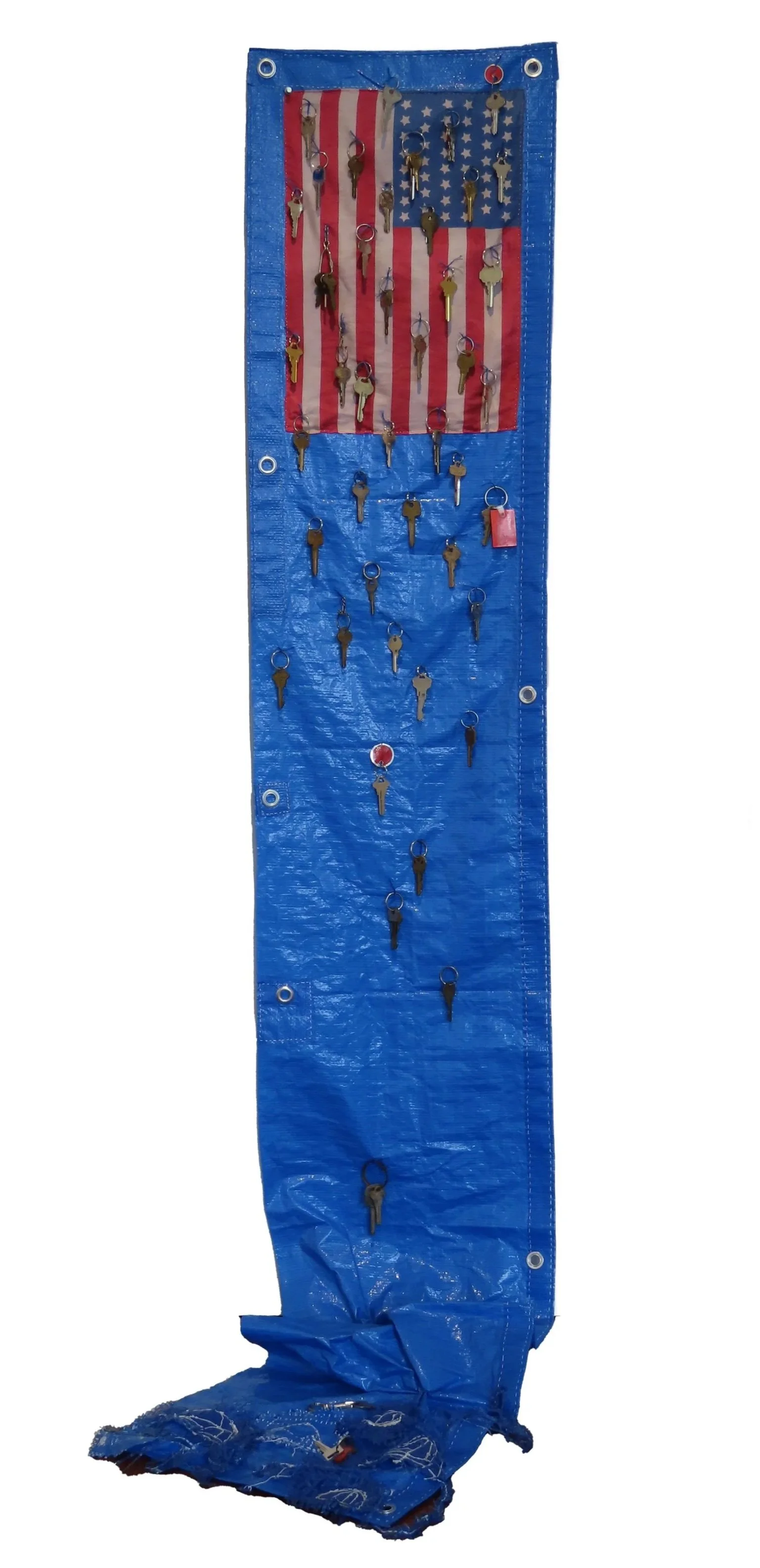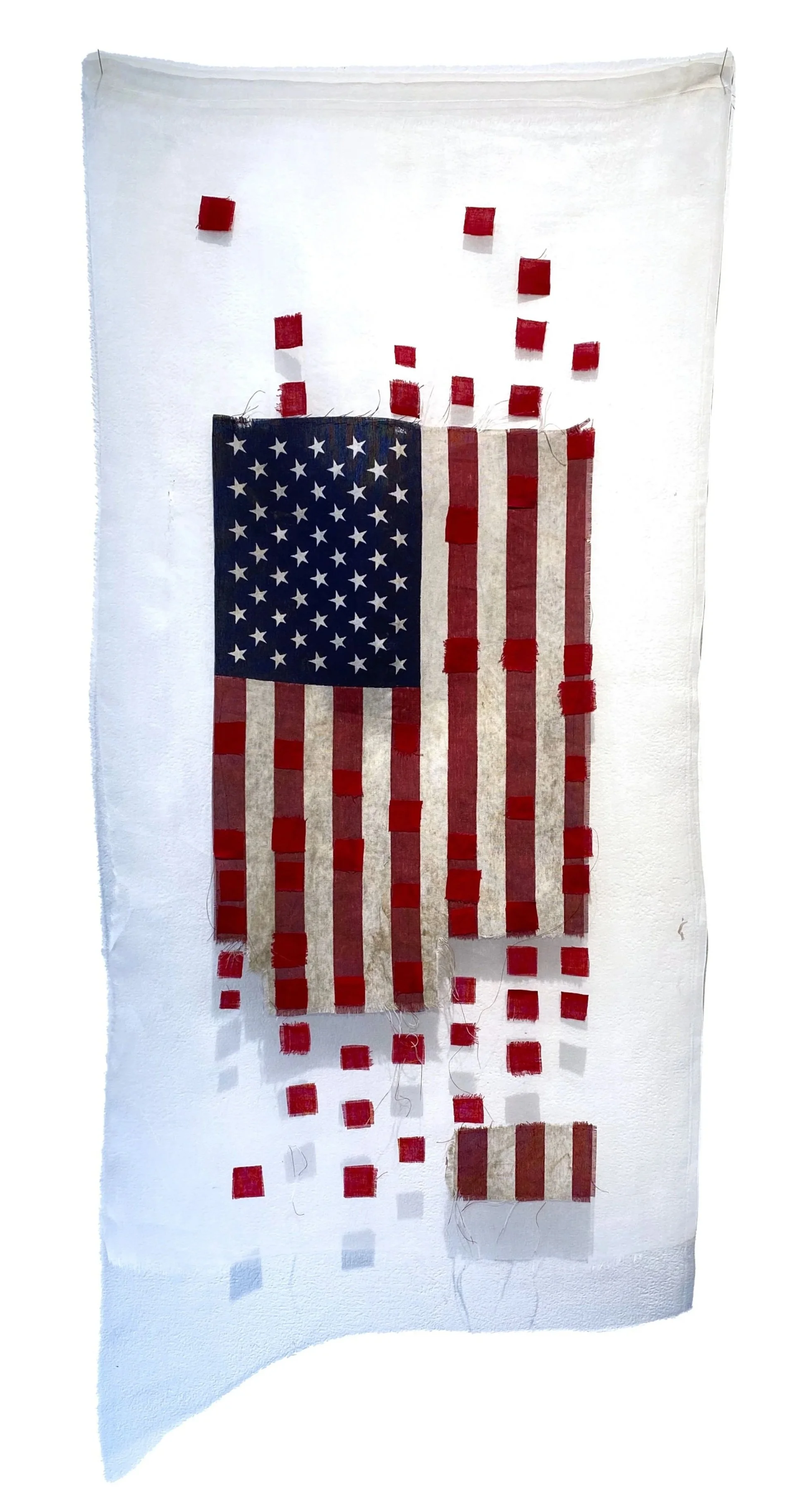 I began collecting discarded and found fragments of American flags after a wave of intense patriotism swept the nation following 9/11 in 2001. Flags were everywhere! The shredded and worn flags I discovered created a jarring contrast to the patriotism and pride they were meant to represent. I knew there was an important project using these found flags that I would eventually pursue. The symbolism and visual impact of these abandoned artifacts seemed to ask the question: who and what does the American flag actually represent?